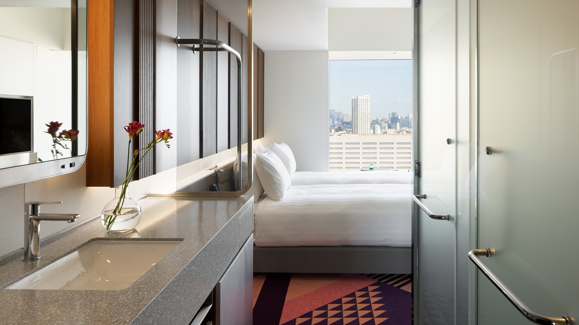 街のパノラマビューを一望できる、明るくて風通しの良いインテリアのスーペリアルーム。気分を高めるようなデザインとリフレッシュできるレインシャワーを備えたお部屋で、東京観光を爽やかにスタートできます。夜は大きめのベッドやスマートテレビで、ゆっくりとおくつろぎください。