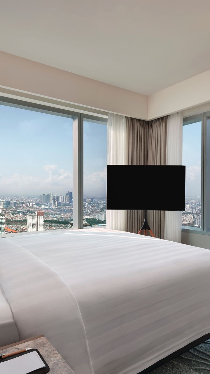 ワンランク上の心地良さが味わえる、非常に広々とした1ベッドルームデラックススイート。リビングエリアとダイニングエリアが独立し、絶景を一望できるスパのようなバスルームを備えています。豪華なキングベッドを備えた快適なベッドルームや、調理器具の揃った洗濯乾燥機付きのミニキッチンがあるこちらのお部屋では、ご自宅のように快適にお過ごしいただけます。