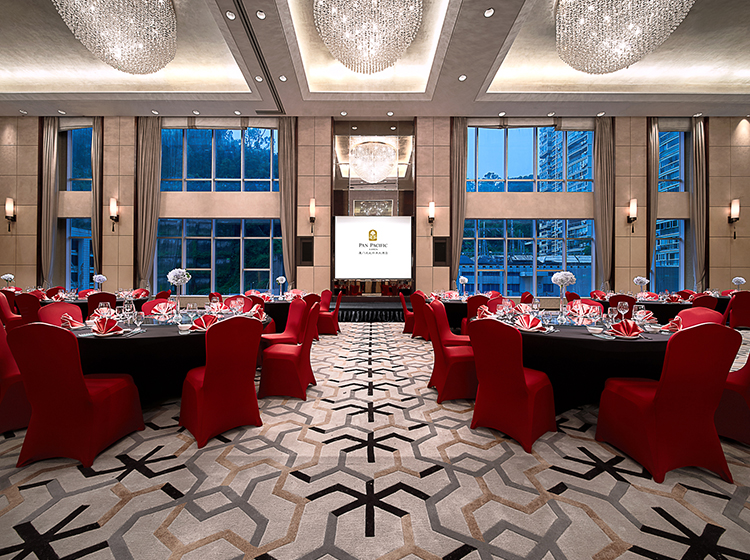 Offering a stunning backdrop for elaborate wedding celebrations, , and among elegant wedding venues in Xiamen, the Diamond Grand Ballroom at Pan Pacific Xiamen features a 7.5-metre-high ceiling complemented by impressive views of the city’s skyline.