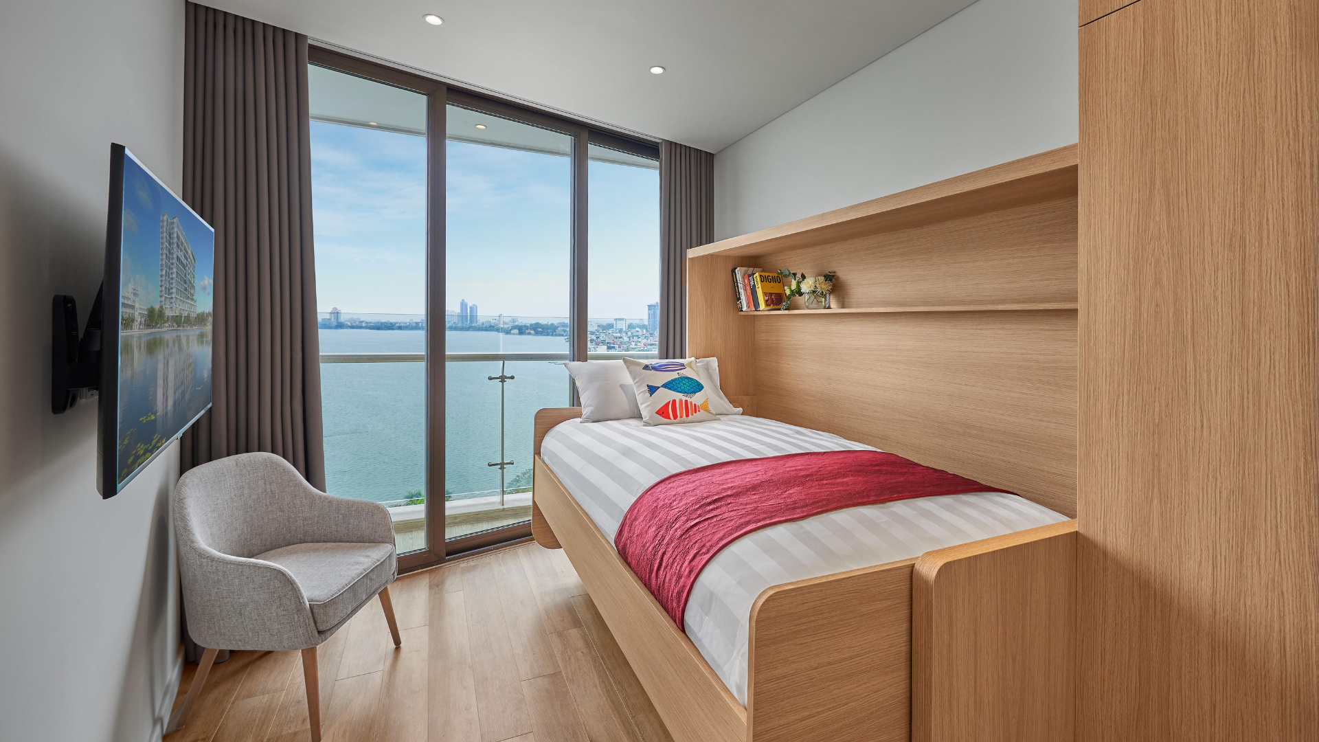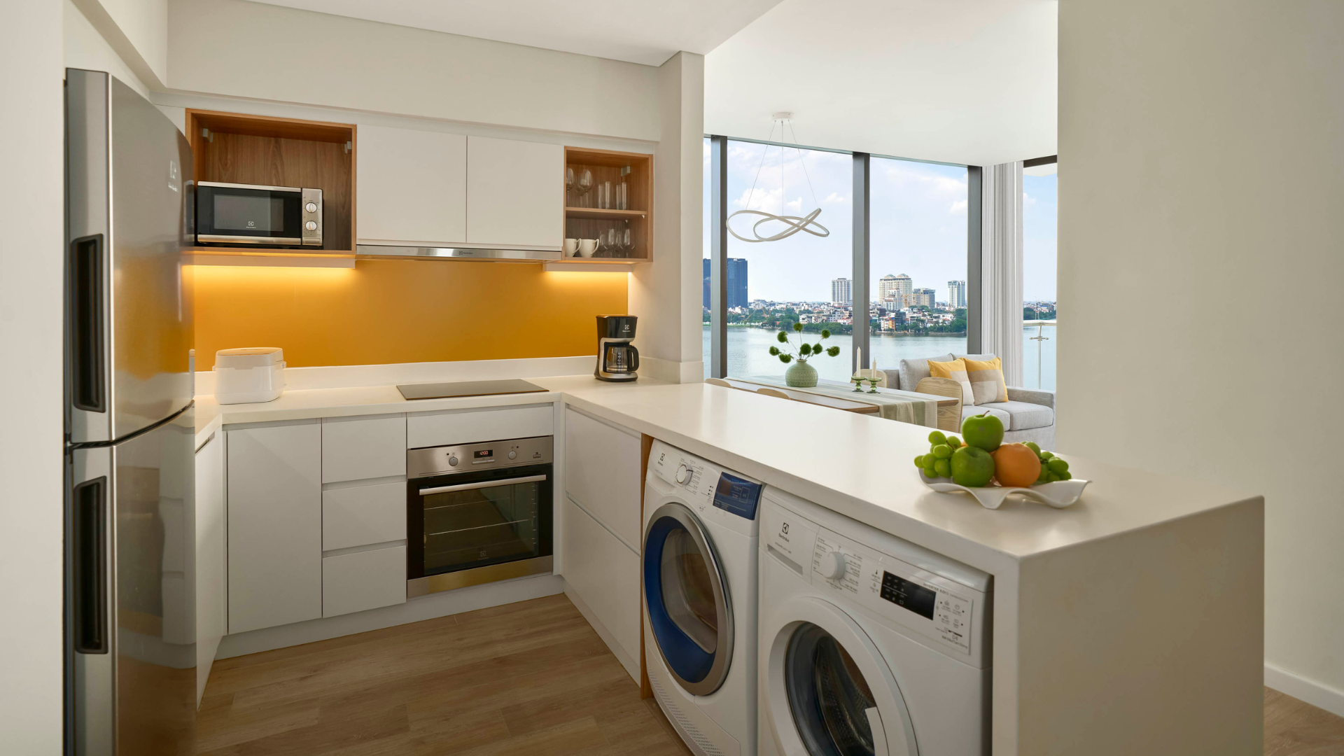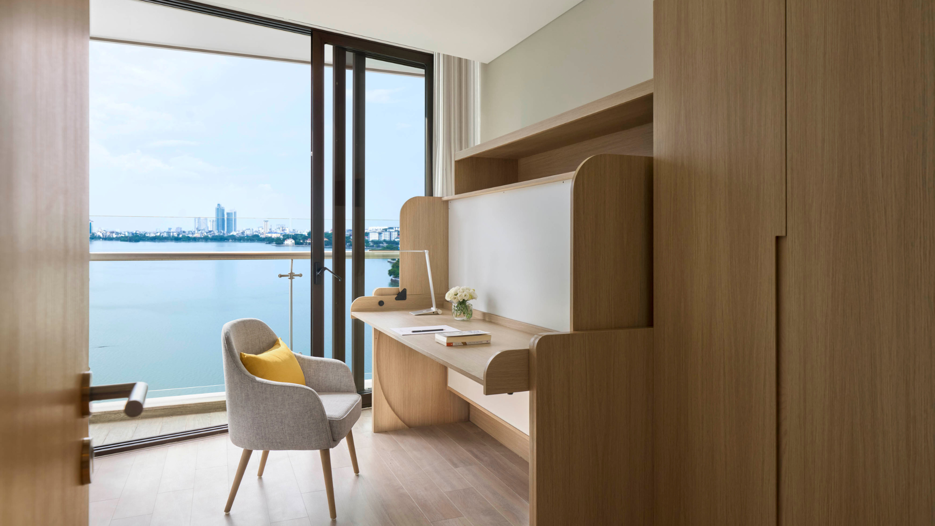 Elevate your extended stay in our modern Vietnam serviced apartments. Our 66sqm One Bedroom Premier Lakeview with Study is designed for both relaxation and productivity. Enjoy the convenience of a fully equipped kitchenette and a sleek bed desk combo, while the private balcony reveals breathtaking views of West Lake and Hanoi’s skyline - perfect for living, working, or simply soaking in the energy of the city.