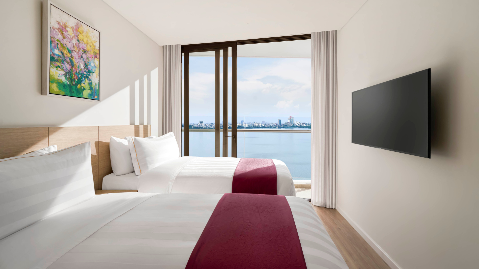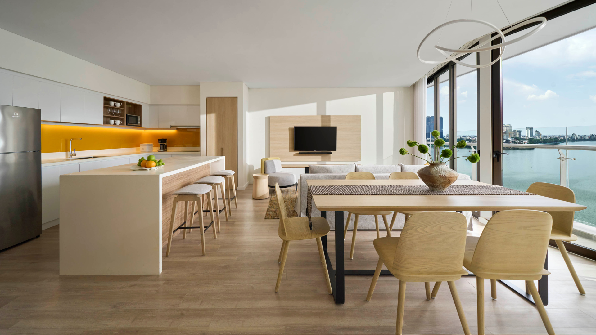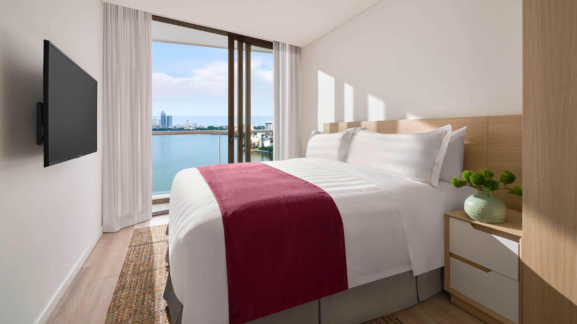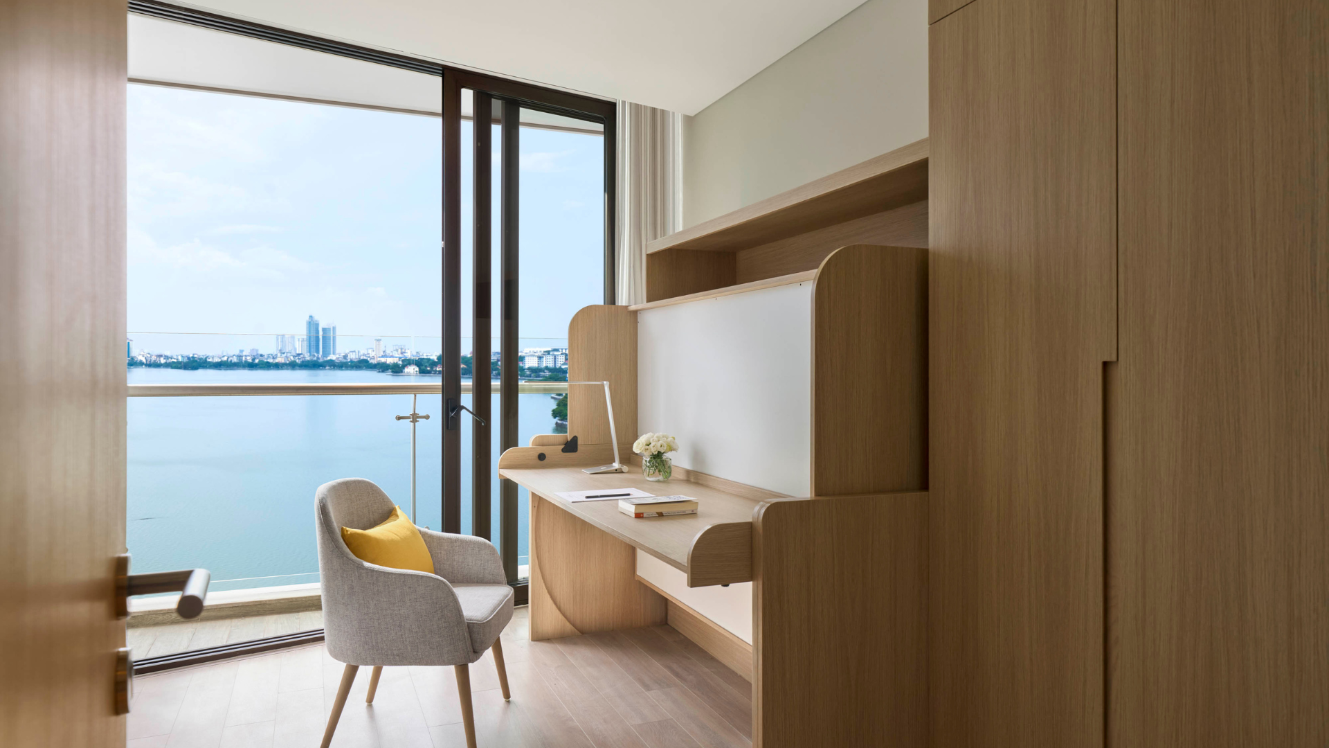From the moment you enter, be impressed by the breathtaking panoramic views of the poetic West Lake and Hanoi’s dynamic skyline from our expansive 112 sqm Three Bedroom Premier Lakeview. Designed for modern living, this stylish suite features a fully equipped kitchenette, a convertible study bed desk, and an ensuite bathroom with both a bathtub and walk-in shower, offering the perfect blend of comfort and functionality for an elevated stay and an ideal family accommodation in Hanoi.