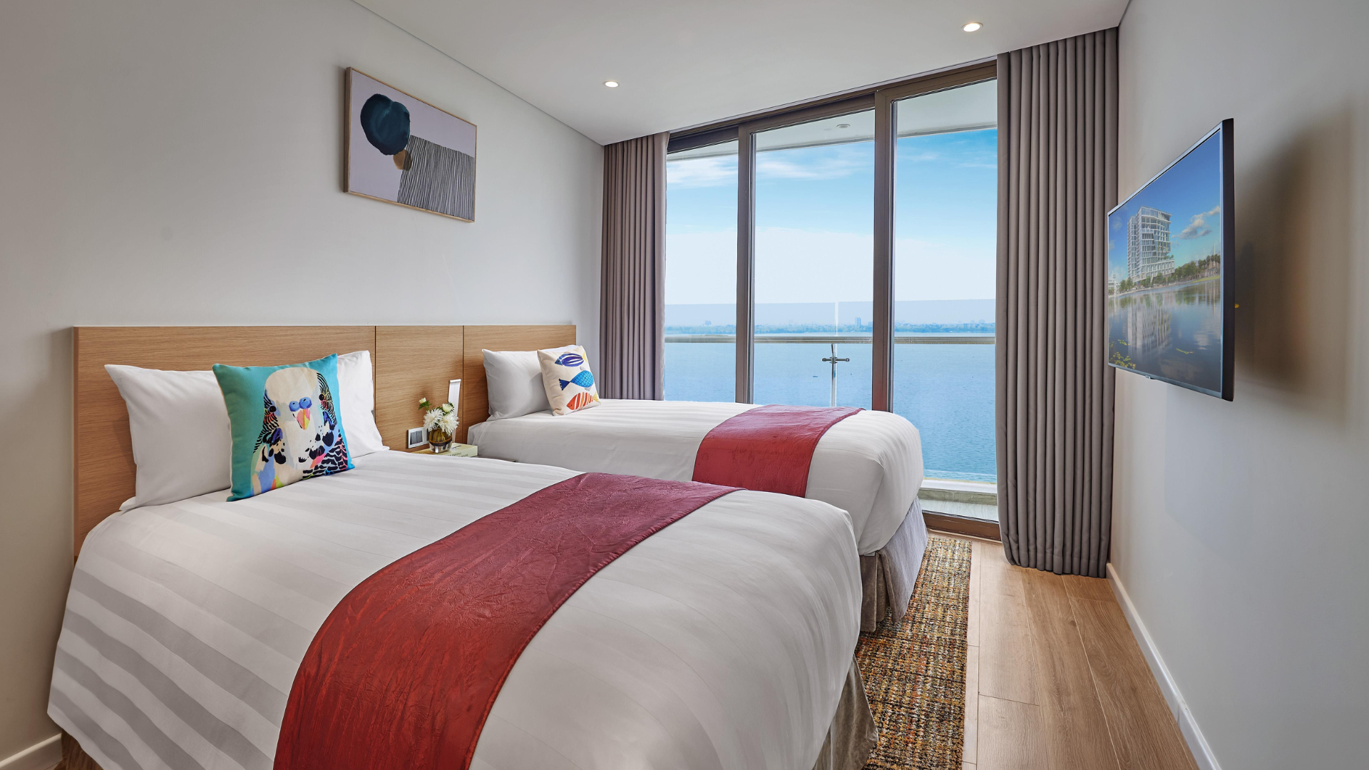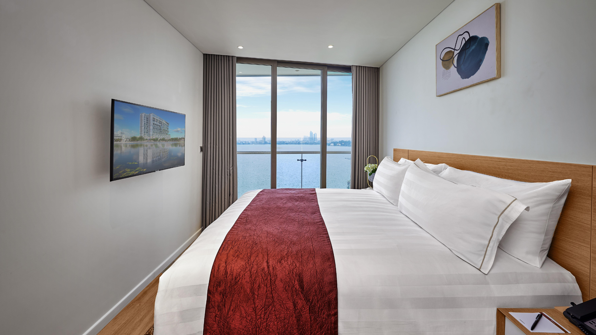 Experience the best of both worlds with sweeping views of the vibrant city skyline and serene West Lake from our Two Bedroom Premier Lakeview Suite. Perfect for families or friends travelling together, this stylish suite features separate living and dining areas, a modern kitchenette, and all the space and comfort you need for an effortless stay in Hanoi at one of the hotels near West Lake Hanoi.