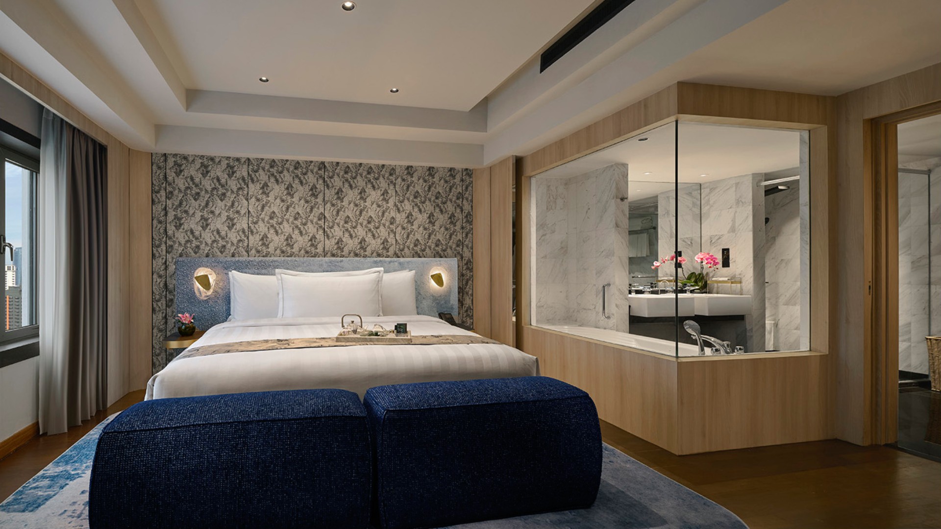 独立したリビングルーム、快適なワークスペース、ラグジュアリーなバスルーム、心地よい眠りを叶える上質なキングサイズベッドを備えたシグネチャースイートで、ゆったりとしたひとときをお過ごしください。
