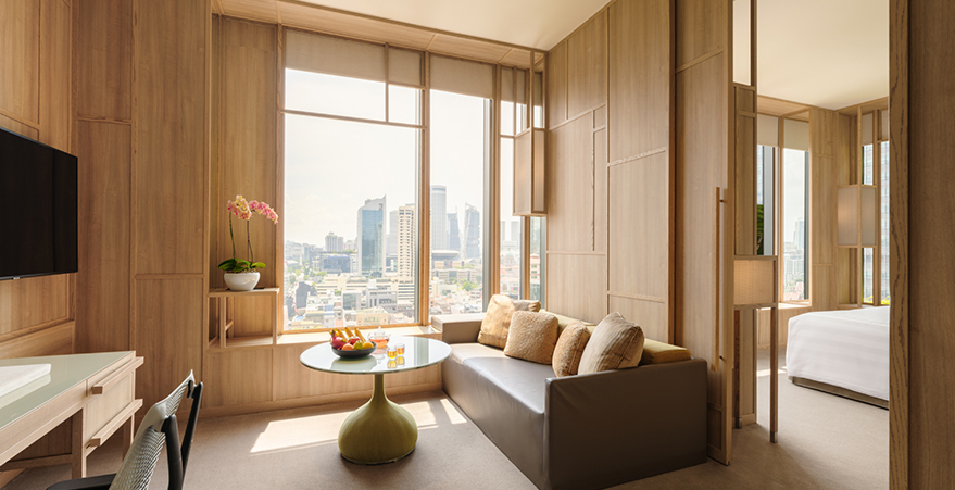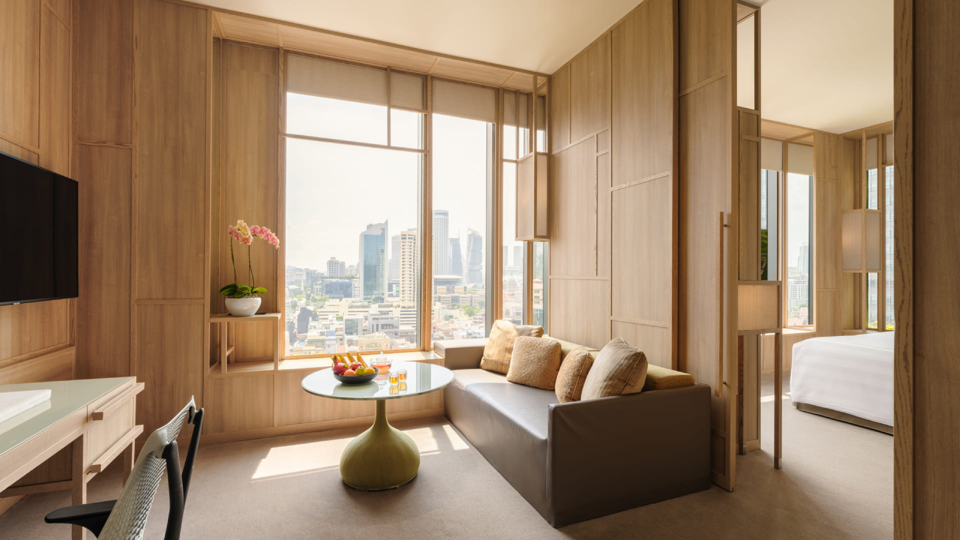 アーバンスイートでは、床から天井まで伸びる大きな窓がホンリンパークの穏やかな景色を縁取り、街の中心に作り出された光あふれるサンクチュアリを眺めることができます。仕事とリラクゼーションの両方を考慮して考え抜かれたデザインのこのスタイリッシュなスイートには、独立したリビングエリア、ゆっくりと浸かれる豪華なバスタブ、重要な仕事に取り組むことができる設備の充実したワークデスクが備わっています。